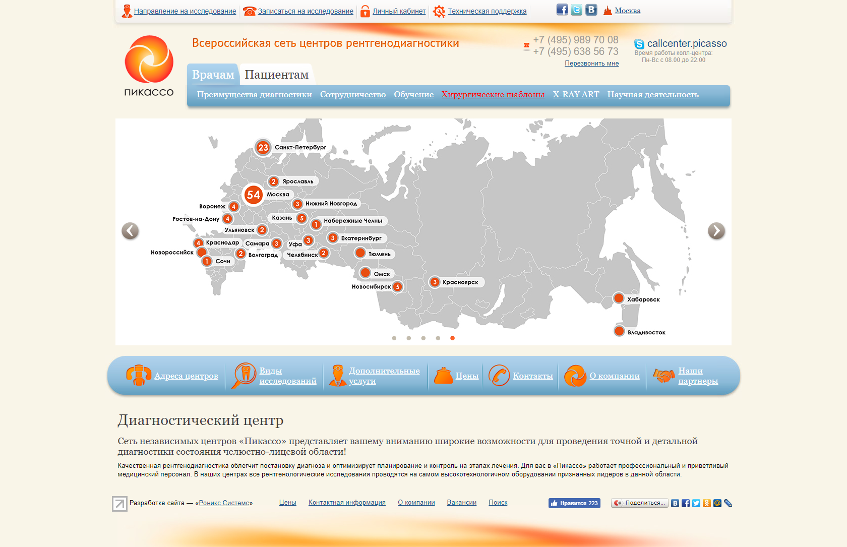 Для «Пикассо» мы в 2012 году разработали веб-портал для различных регионов на платформе 1С-Битрикс, рассказывающий обо всем многообразии оказываемых центром услуг. На портале расположен Личный кабинет, анонсы вебинаров и другая информация.