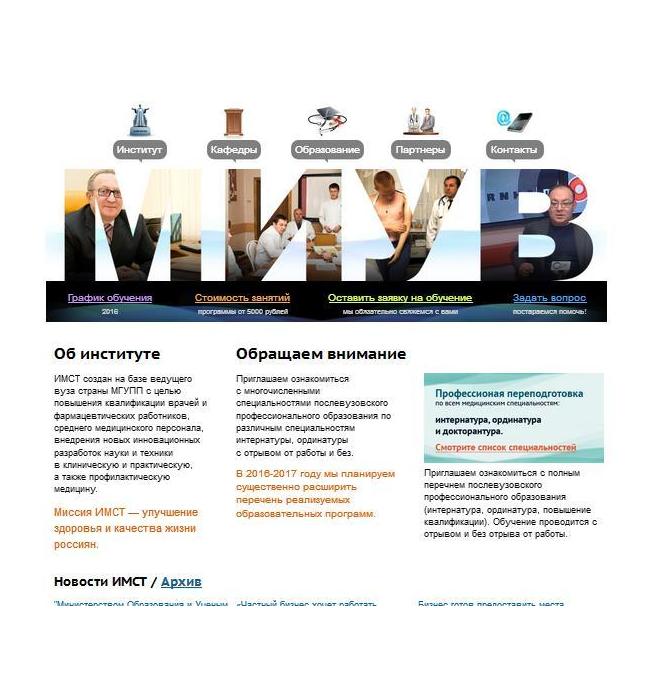 Мы разработали веб-сайт Медицинского Института Усовершенствования Врачей, созданного на базе ведущего вуза страны МГУПП.