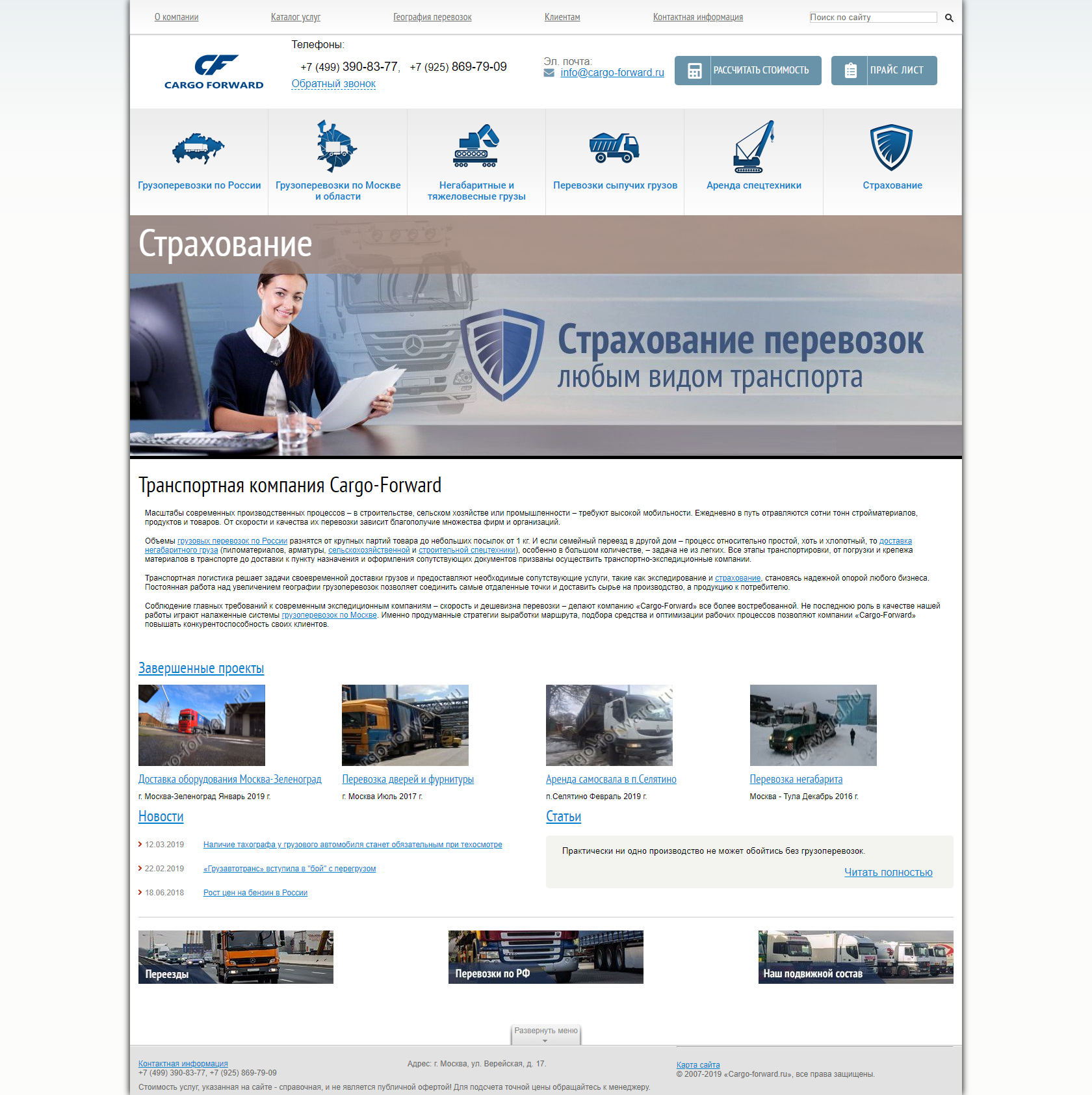Для компании «Cargo-Forward», транспортно-экспедиционной компании, оказывающей услуги круглосуточной доставки грузов по всей России, мы разработали красивый и функциональный веб-сайт.
