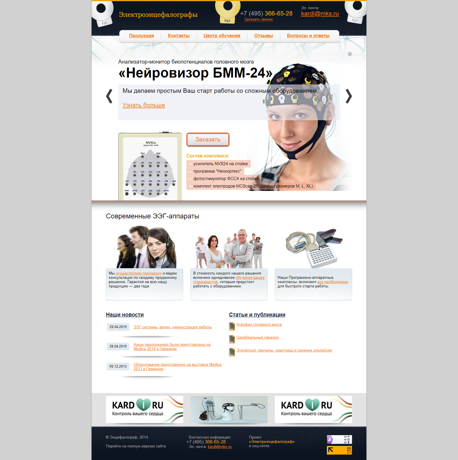Наша компания разработала веб-сайт, посвященный приборам Электроэнцефалограф, на котором можно ознакомиться с каталогом продукции, а также купить интересующий прибор.