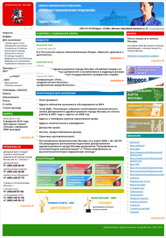 Для Московского Департамента Здравоохранения в 2004 году нами был разработан веб-сайт. Сайт давал исчерпывающую информацию деятельности Департамента и заслужил награду «Золотой сайт — 2007».